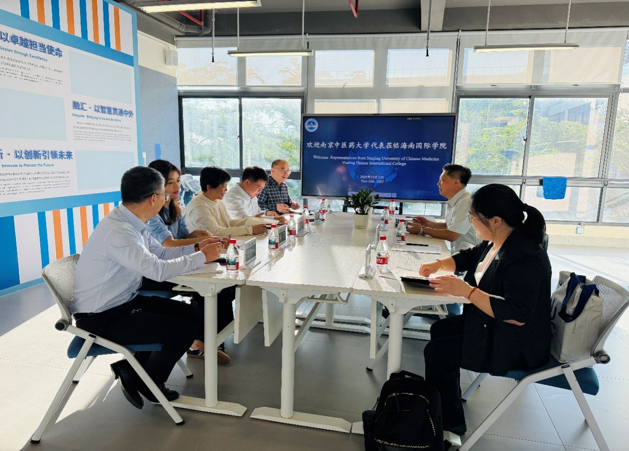 2025年11月13日上午,南京中医药大学奥塔哥智慧健康学院执行院长张丽、党总支副书记张建华一行访问东北林业大学海南国际学院,双方在海南陵水黎安国际教育创新试验区举行座谈,就中外合作办学相关议题进行深入交流。